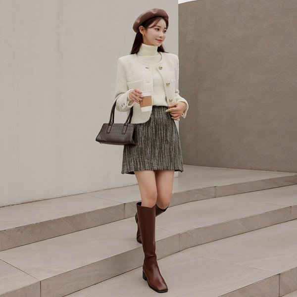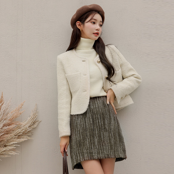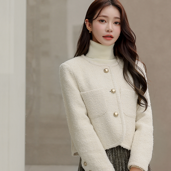 金色纽扣 结子花式 羊毛 粗呢 夹克