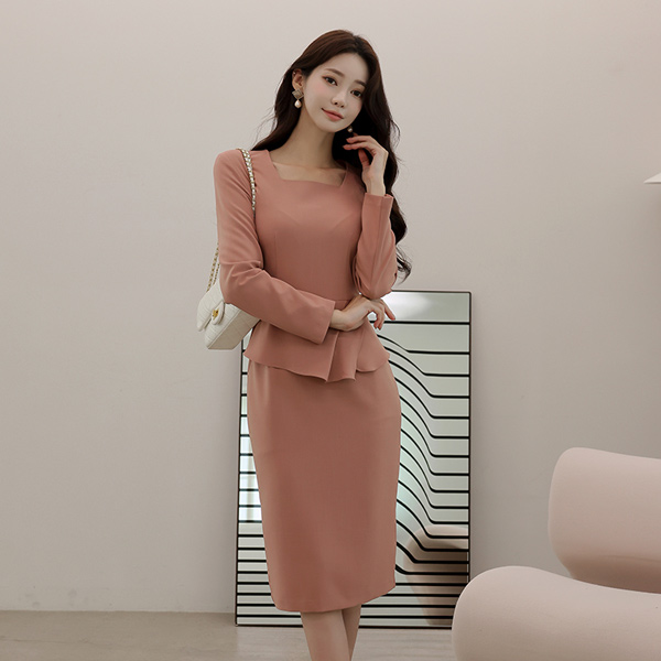 MABELLE 方领 不规则 荷叶边 连衣裙