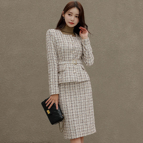 方领 束带 粗呢 夹克