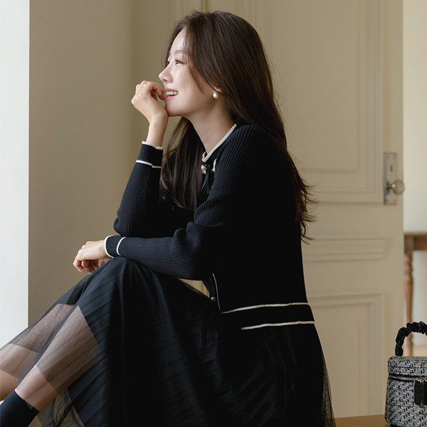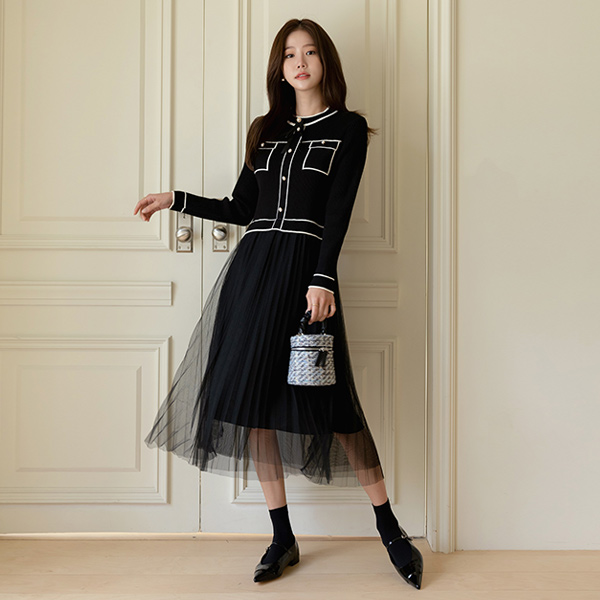 针织衫 薄纱 胸针 (套装) 连衣裙