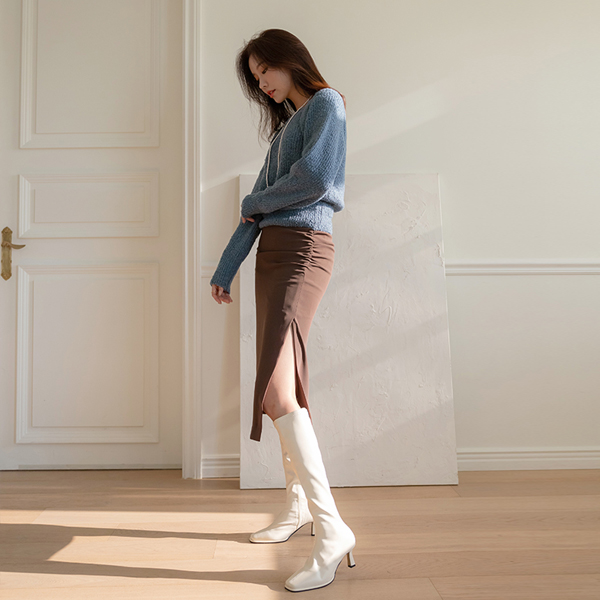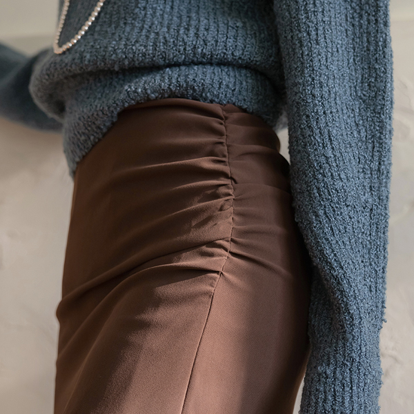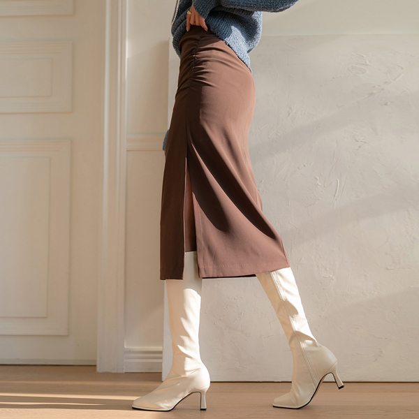 玫瑰色 侧纽 深 开衩 褶皱 裙子