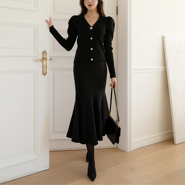 宝石 扣子 点缀 泡泡袖 开衫 针织衫