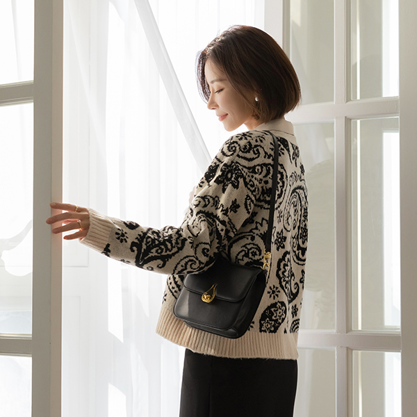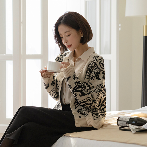 柔丝 触摸 佩斯利 图案 点缀 开衫