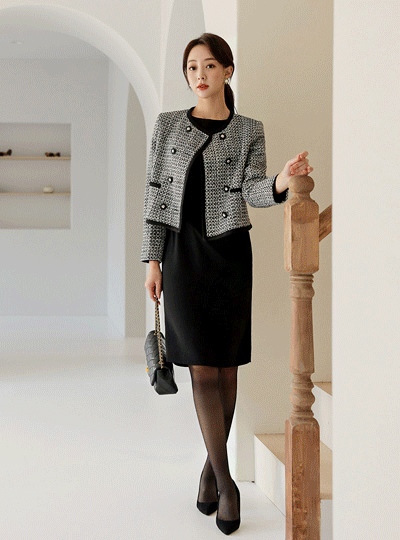 配色 双 扣子 粗呢 夹克