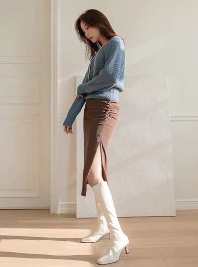 玫瑰色 侧纽 深 开衩 褶皱 裙子