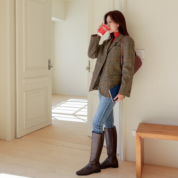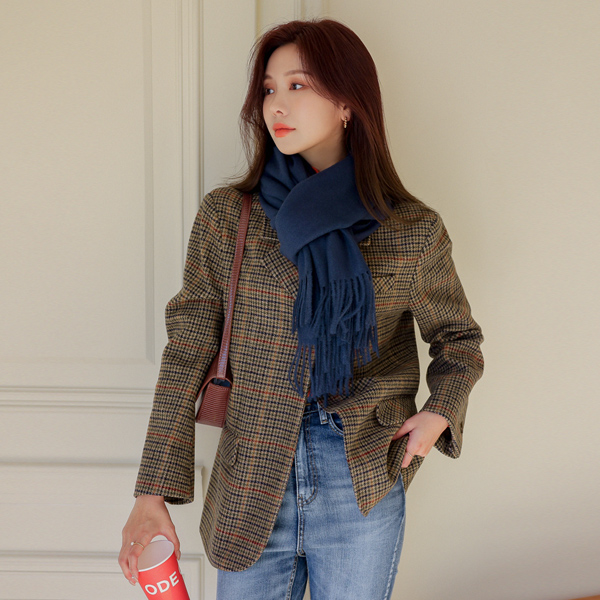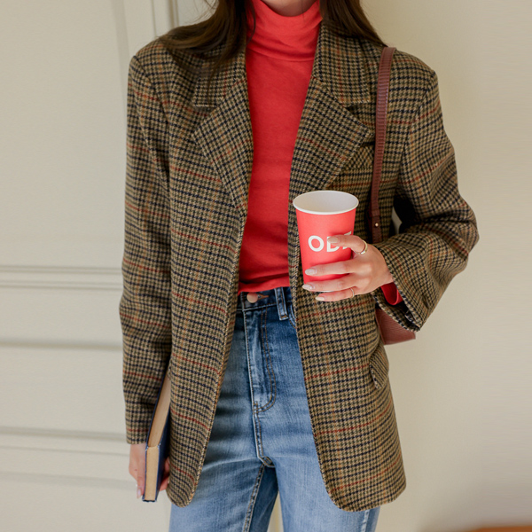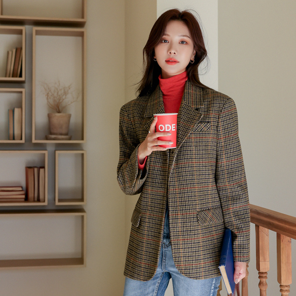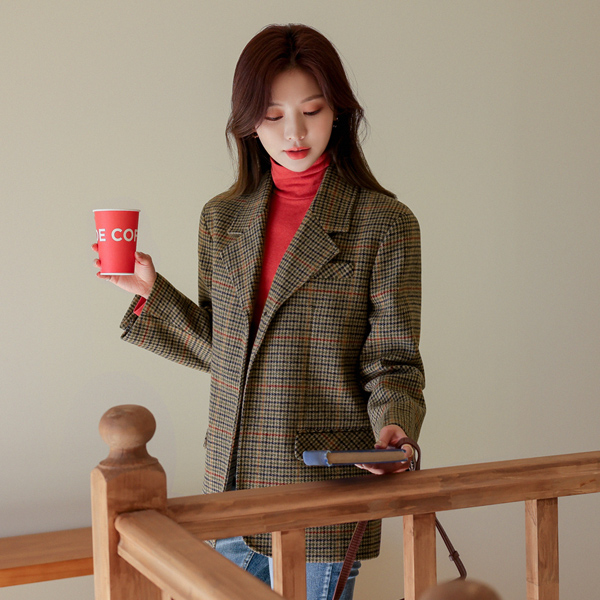 特别服务 情调 格子 图案 宽松 羊毛 夹克