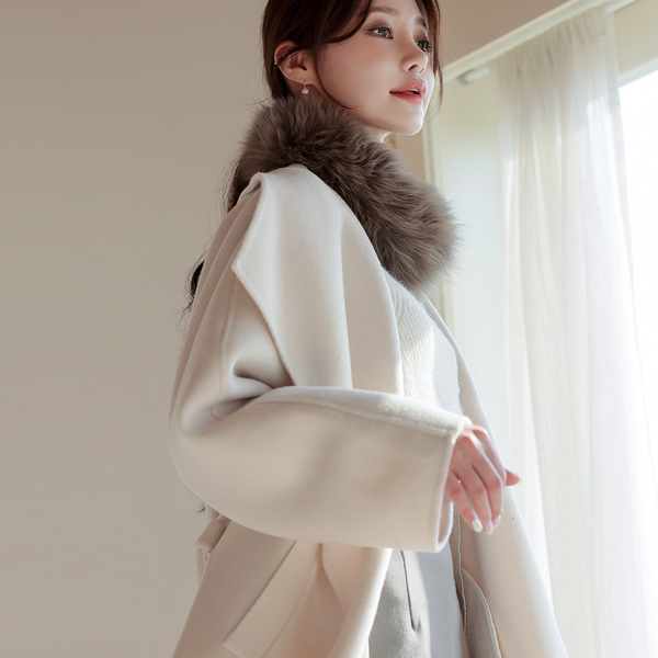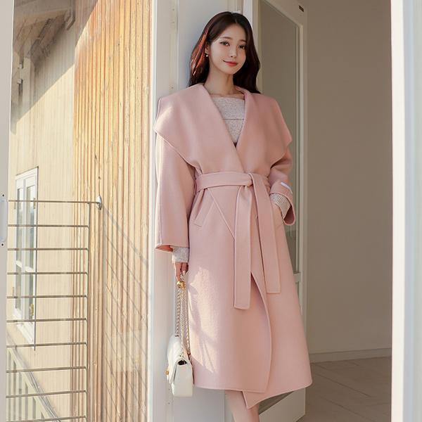 优雅 宽松 披巾领 手工 大衣