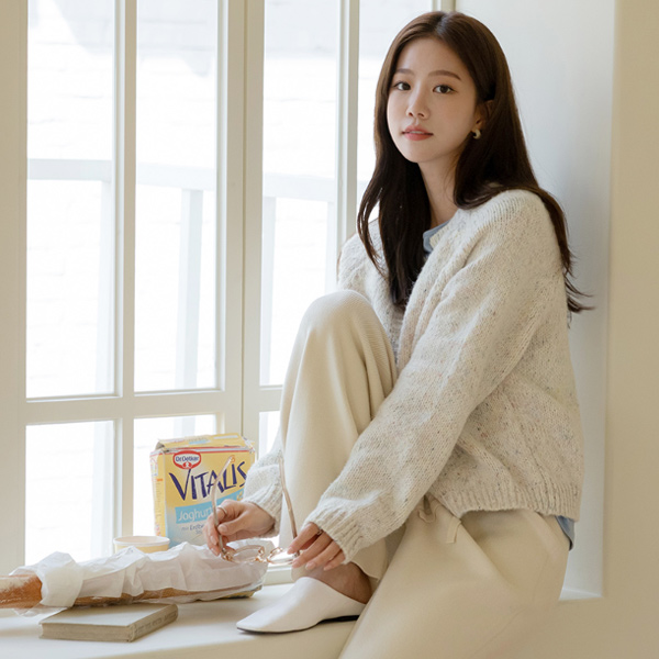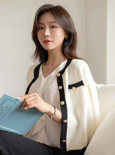 Jenny 古玩 黄金 扣子 配色 点缀 羊绒 开衫
