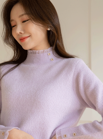 黄金 扣子 点缀 条绒 半高领 针织衫