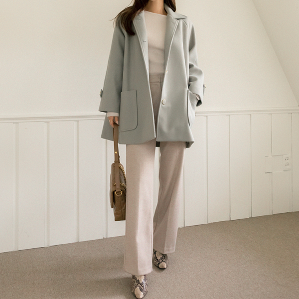线条 宽松 羊毛 短上衣 大衣