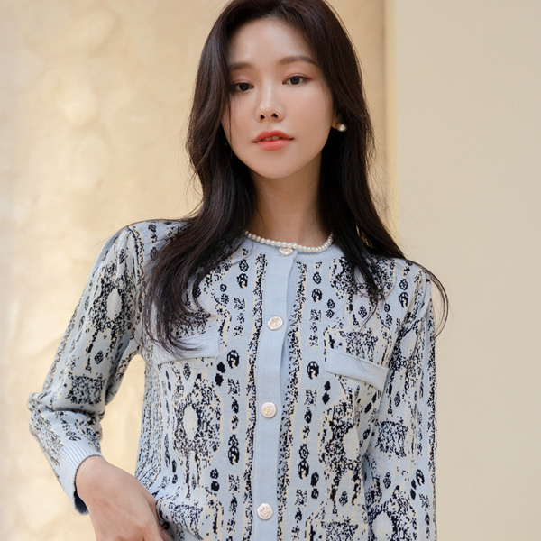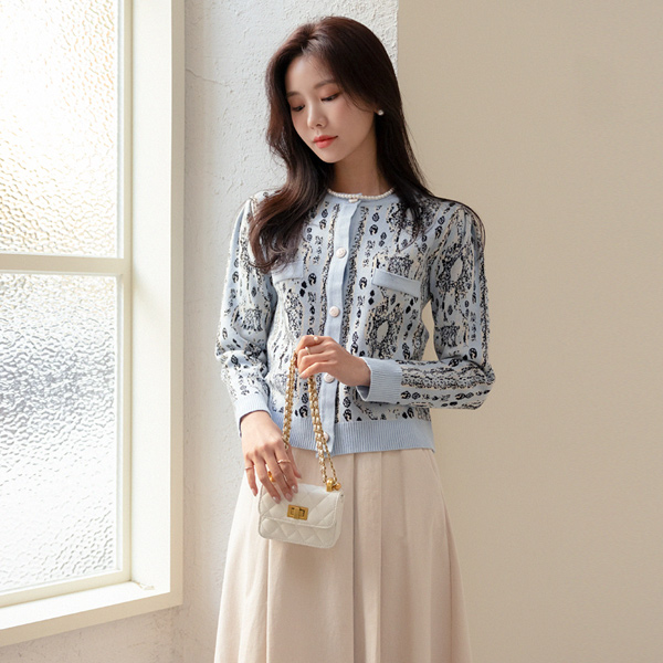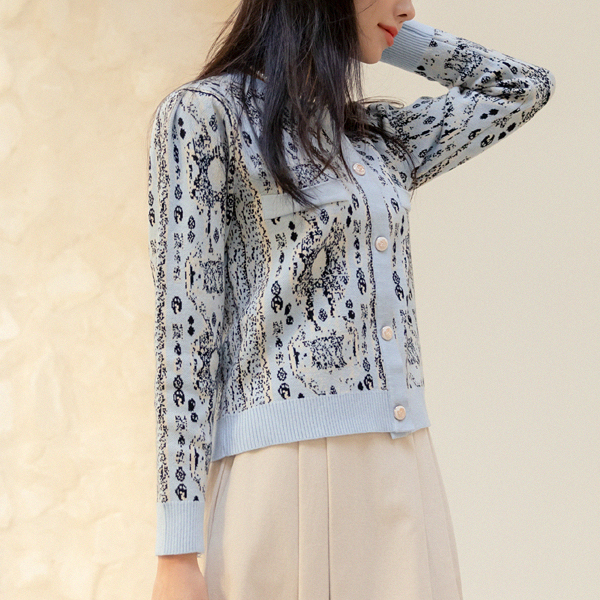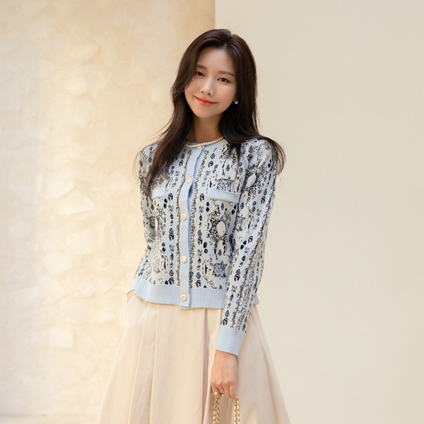 优雅 图案 点缀 针织衫 开衫