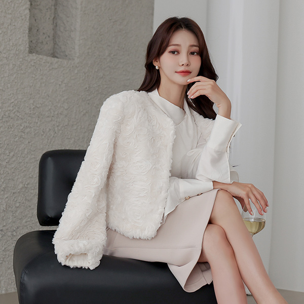 浪漫 玫瑰 毛皮草 圆领 夹克(绗缝里料)