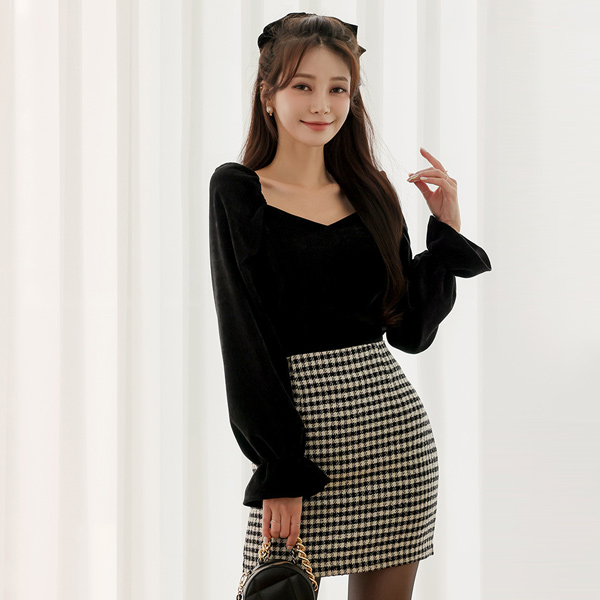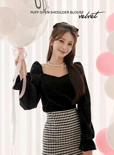 丝绒 泡泡袖 露肩 罩衫