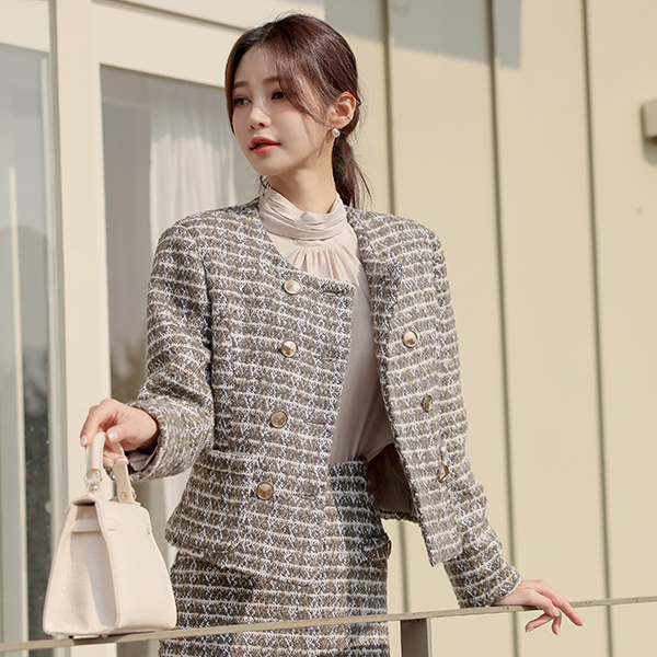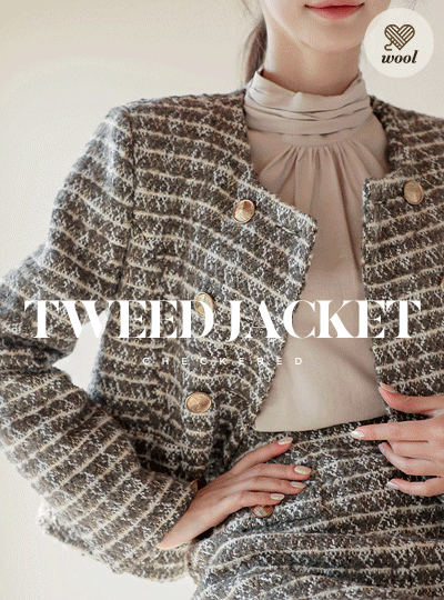 格子 羊毛 双 扣子 粗呢 夹克(绗缝里料)