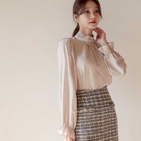 褶边 褶皱 高龄 缎子 罩衫