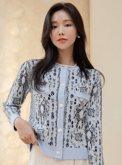 优雅 图案 点缀 针织衫 开衫