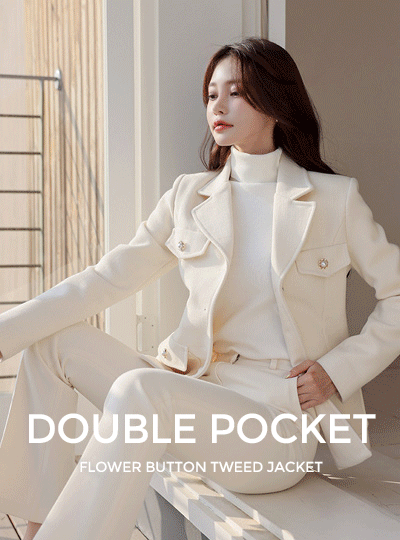 双口袋 花纹 扣子 粗呢 夹克(绗缝里料)