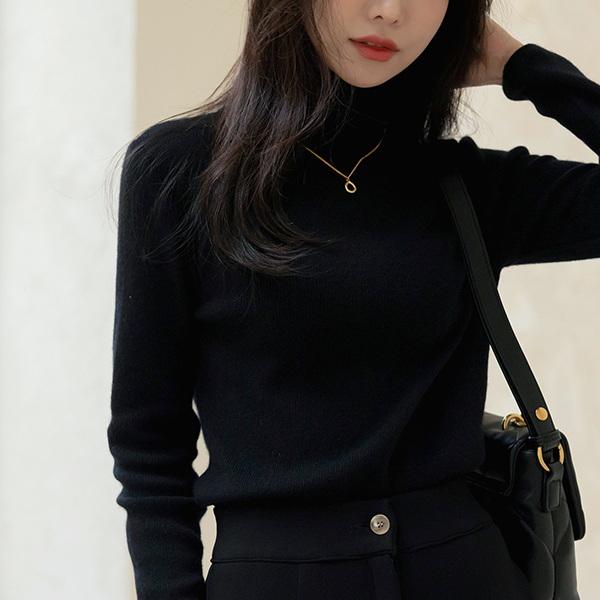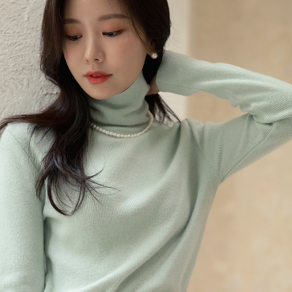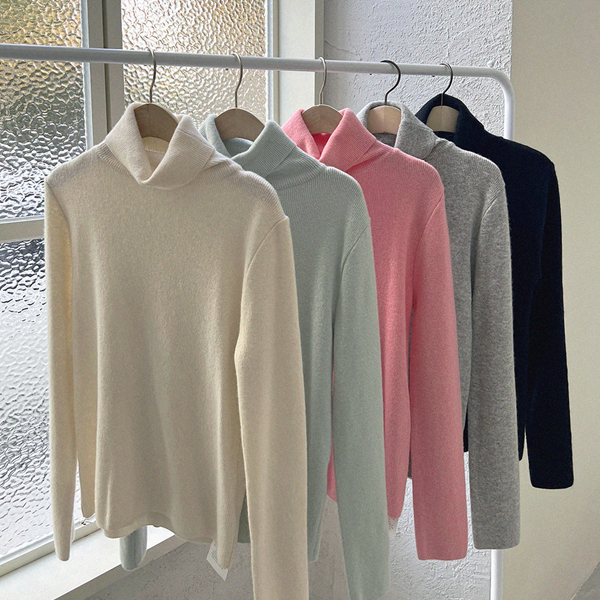 可爱 颜色 开士米&羊毛 特级 高领 针织衫