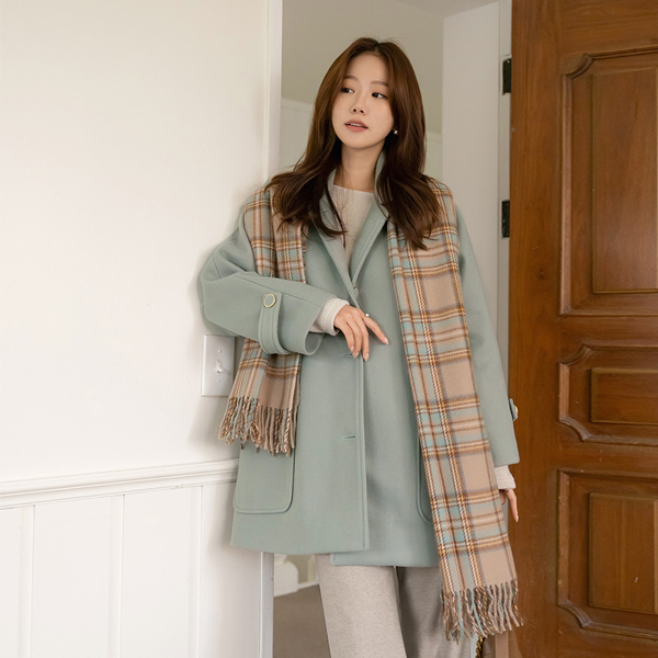 线条 宽松 羊毛 短上衣 大衣