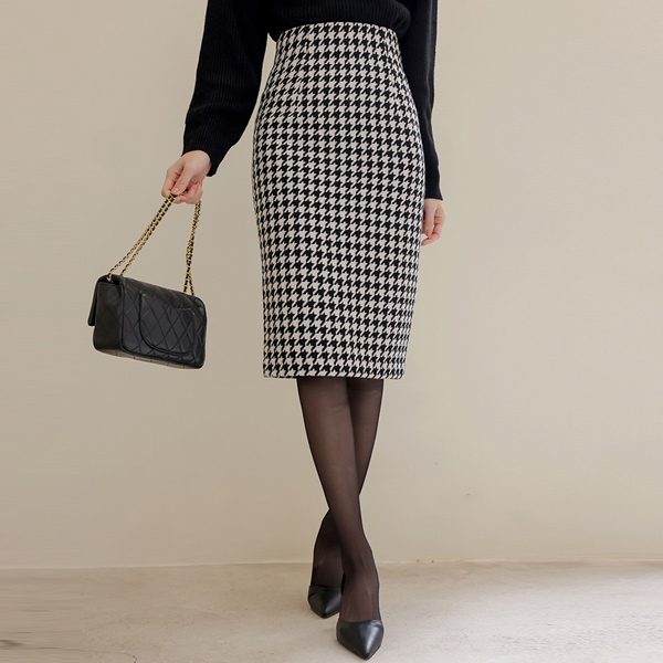 犬牙格子花纹 格子 高腰 羊毛 裙子