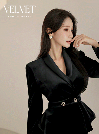 冬季 丝绒 披巾领 两扣 荷叶边 夹克