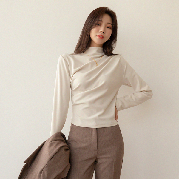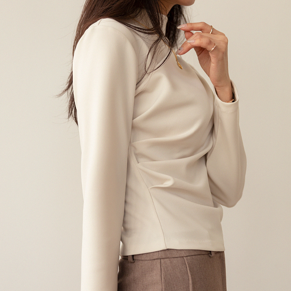 优雅 褶皱 点缀 弹力 T恤衫