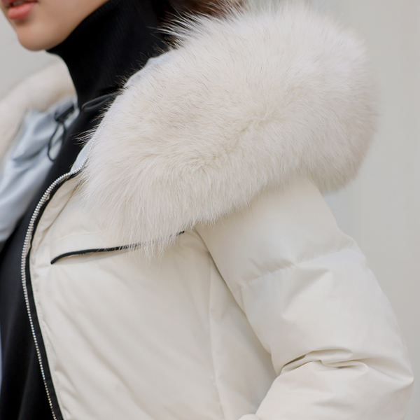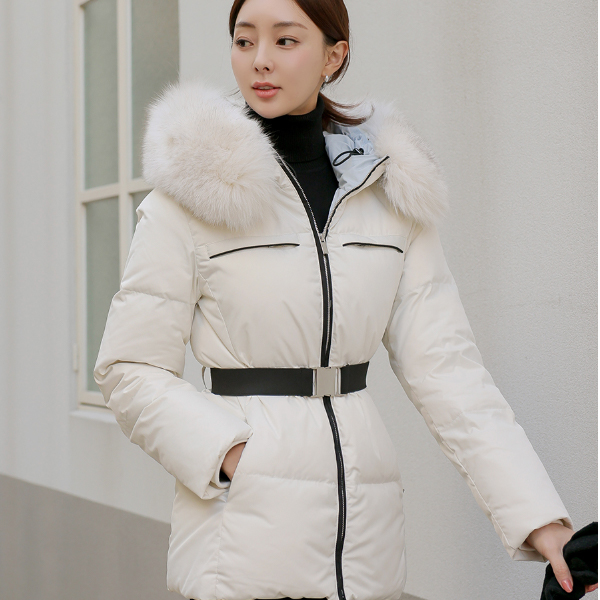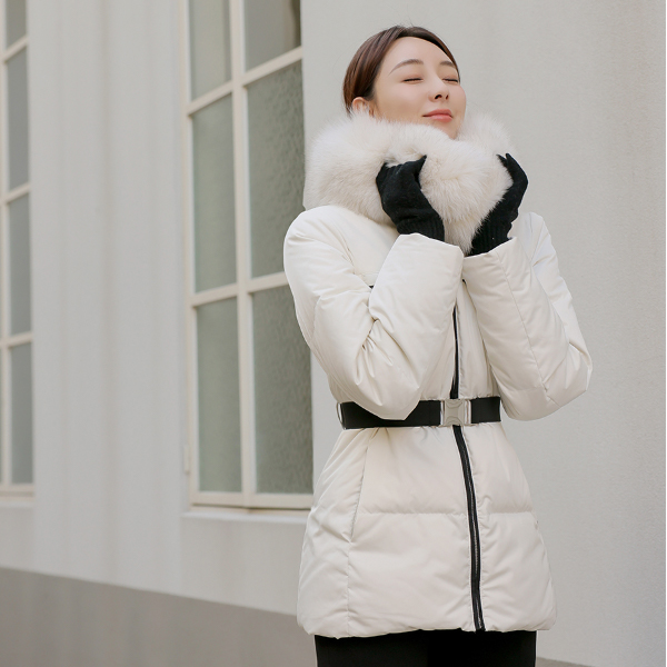 Black 衬里 狐狸毛 鸭绒 褶皱腰带 羽绒服