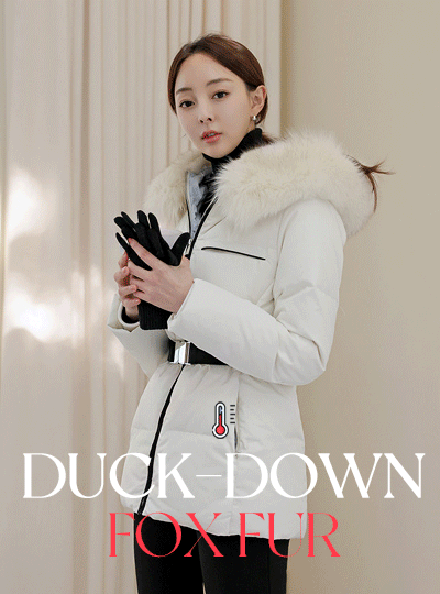 Black 衬里 狐狸毛 鸭绒 褶皱腰带 羽绒服