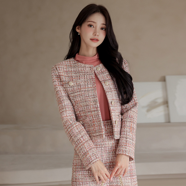 黄金 扣子 圆领 粗呢 夹克