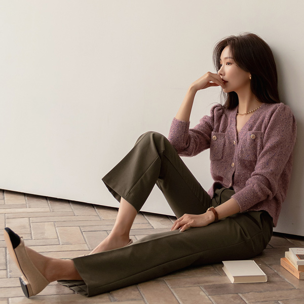 简单 喇叭 柔软的 后侧松紧带 宽松长裤