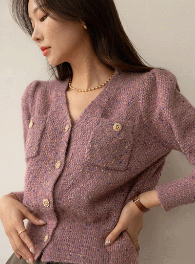闪闪发光的 宝石 扣子 肩膀 垫 针织衫 开衫