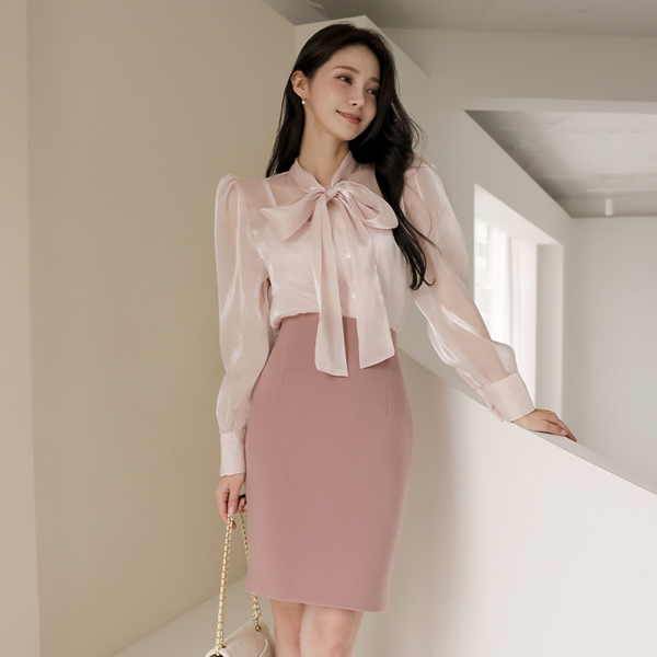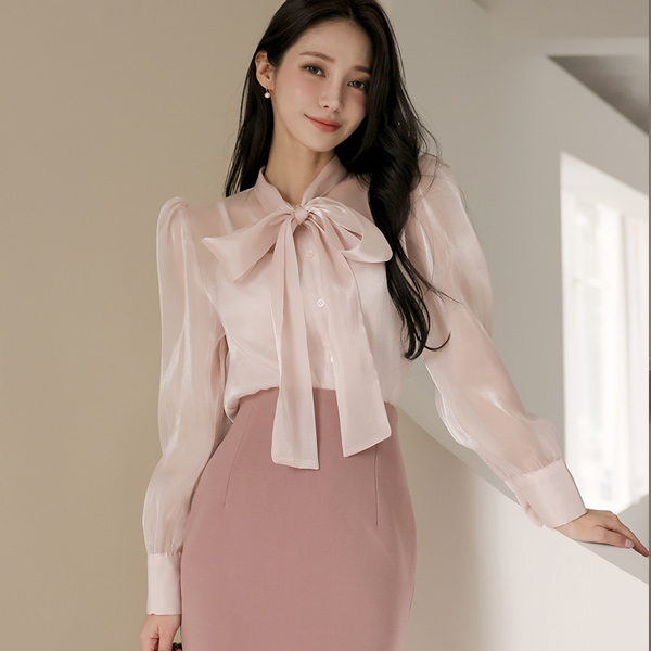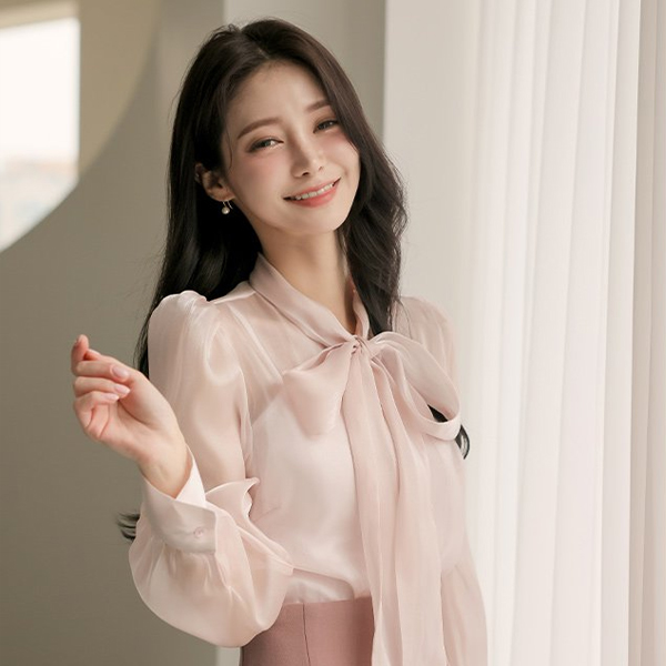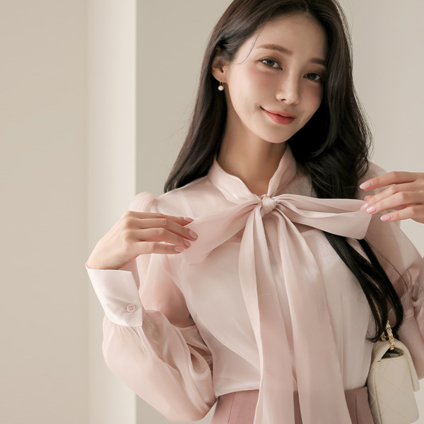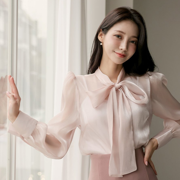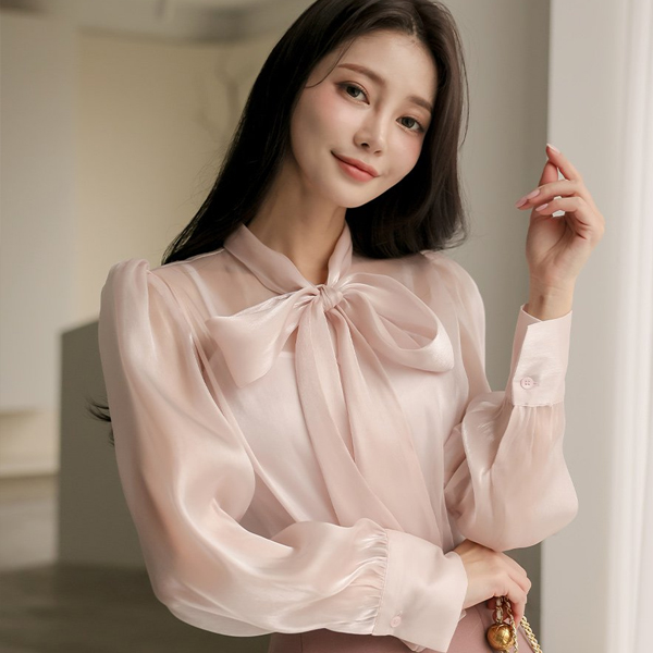 绸缎 有光泽 透视 蝴蝶结 罩衫