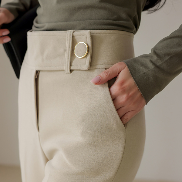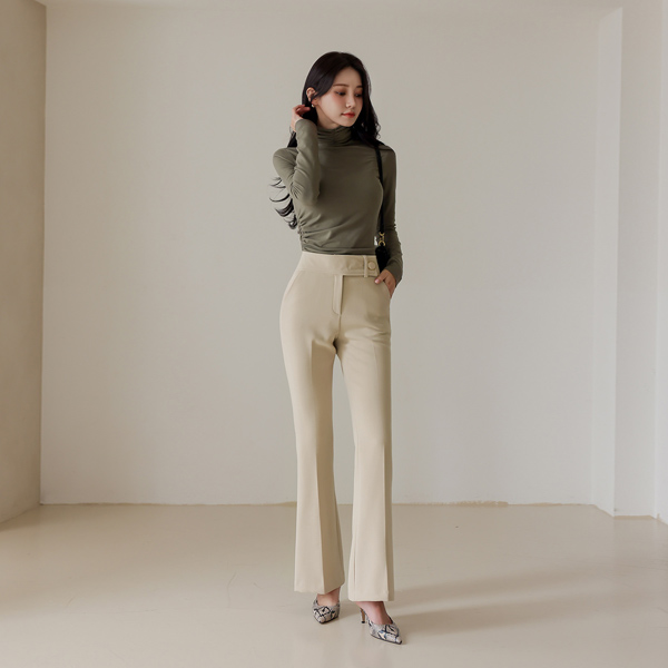 领&侧纽 褶皱 斯利姆 高领 T恤衫