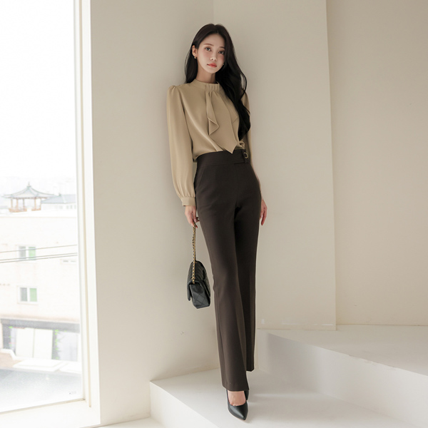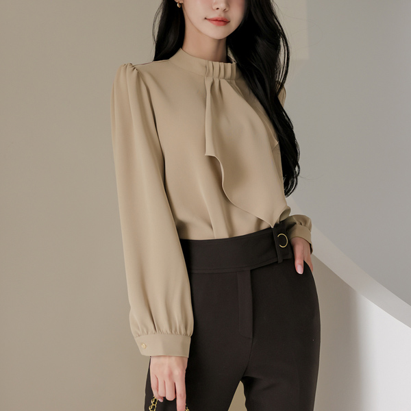 优雅 褶皱 보타이넥 罩衫