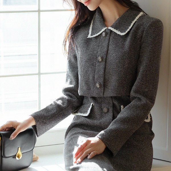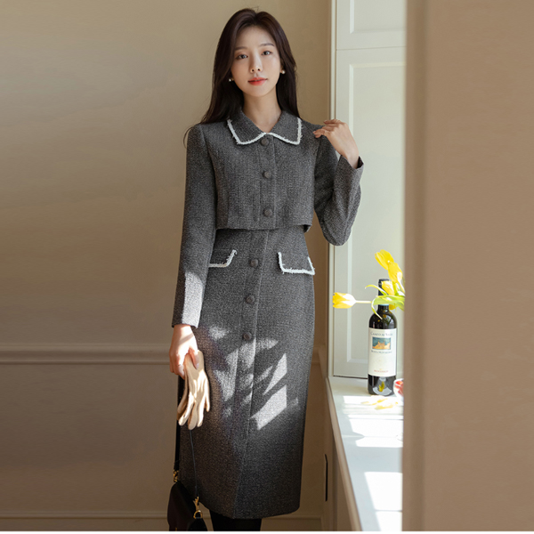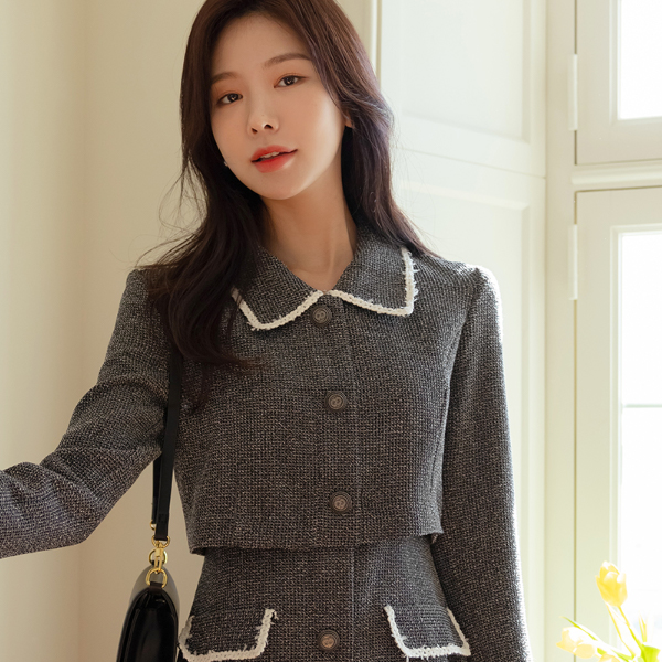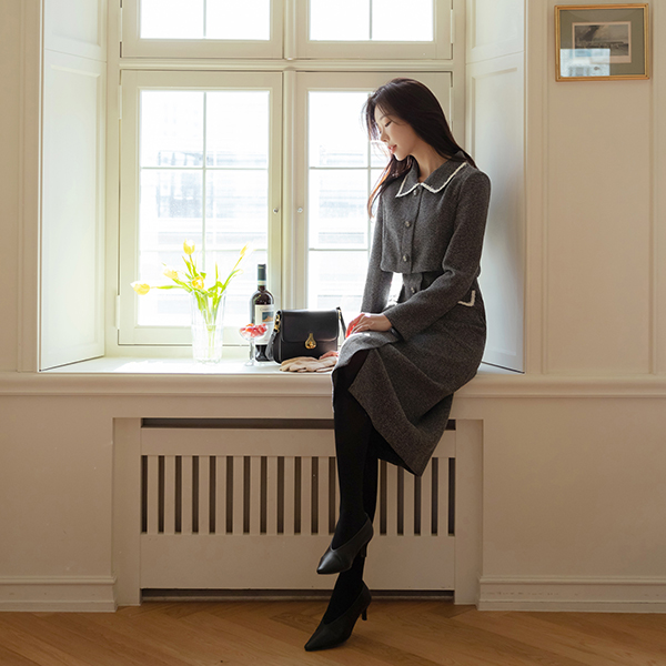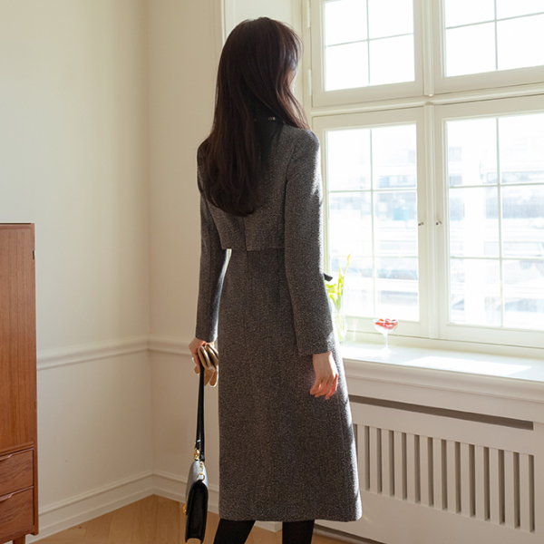 穗饰 配色 线条 摩登 粗呢 连衣裙