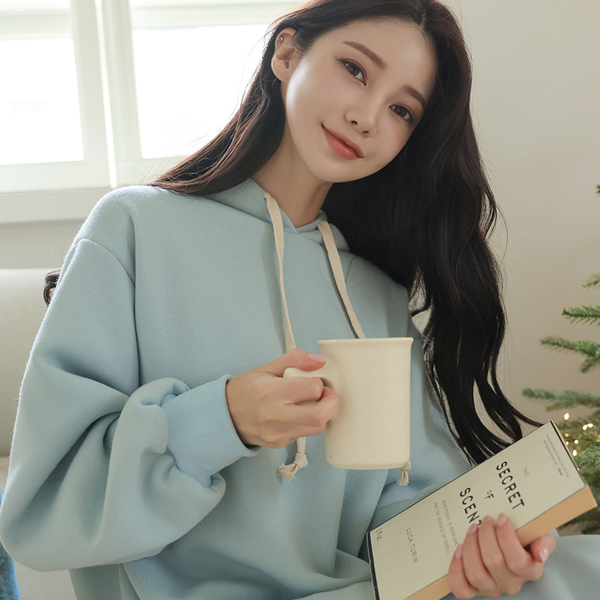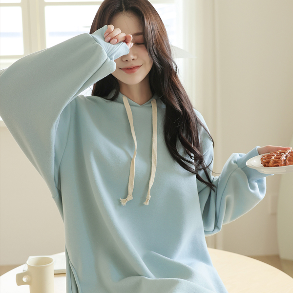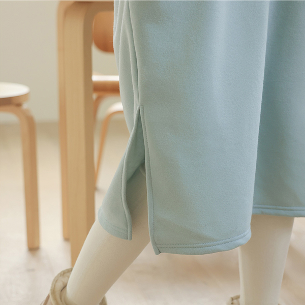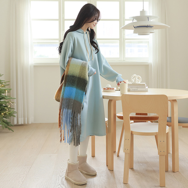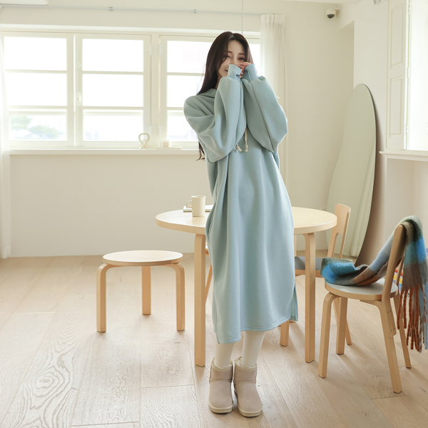 蓬松。 羊毛起绒 带帽 侧纽 开叉 长款 连衣裙