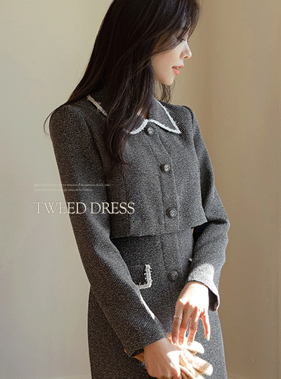 穗饰 配色 线条 摩登 粗呢 连衣裙