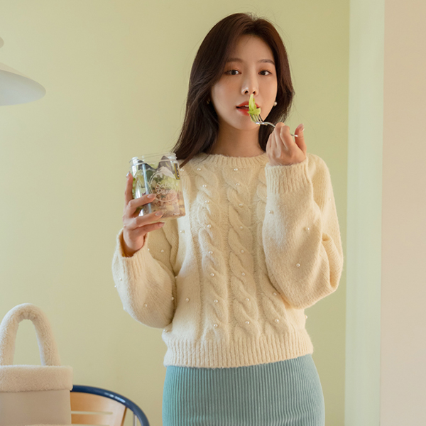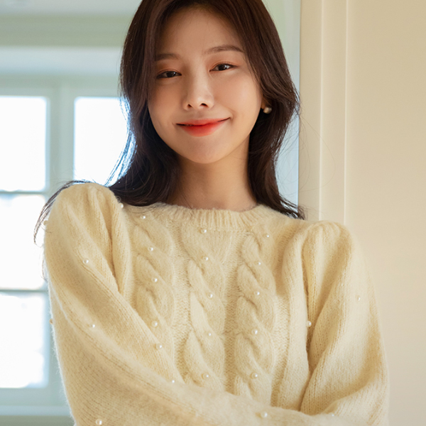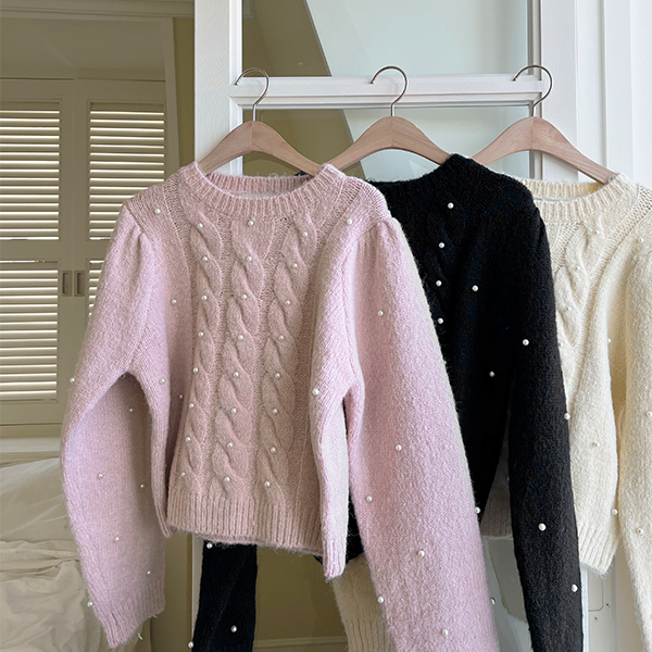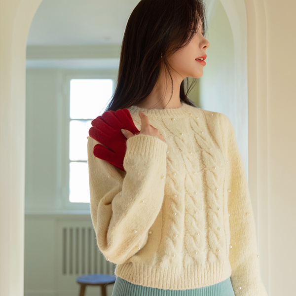 浪漫 珍珠 点缀 柔软的 羊毛 针织衫