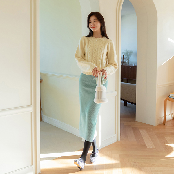 鲜活 颜色 灯芯绒 弹力 松紧带 裙子