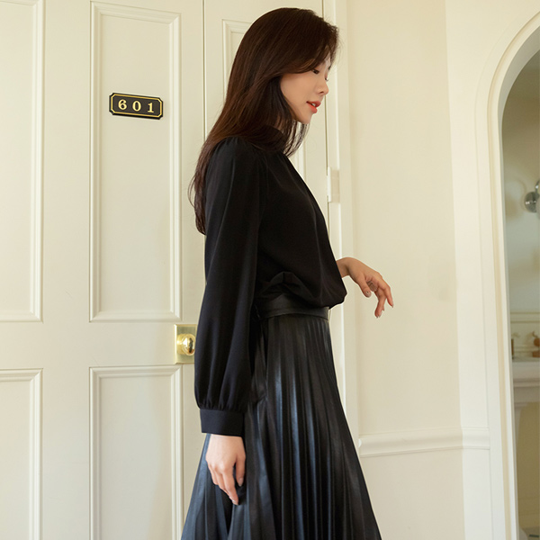 炫酷 情调 Eco 人造皮夹 褶边 后侧松紧带 裙子