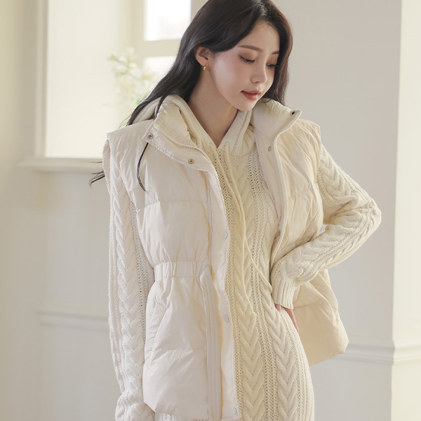 鸭绒 高龄 束带 轻量羽绒服 马甲