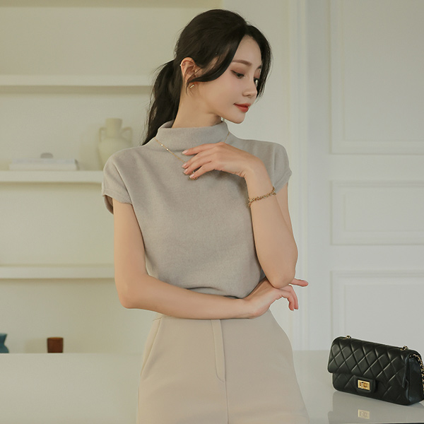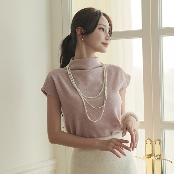 蓬松。 半高领 帽檐袖 拉绒 T恤衫