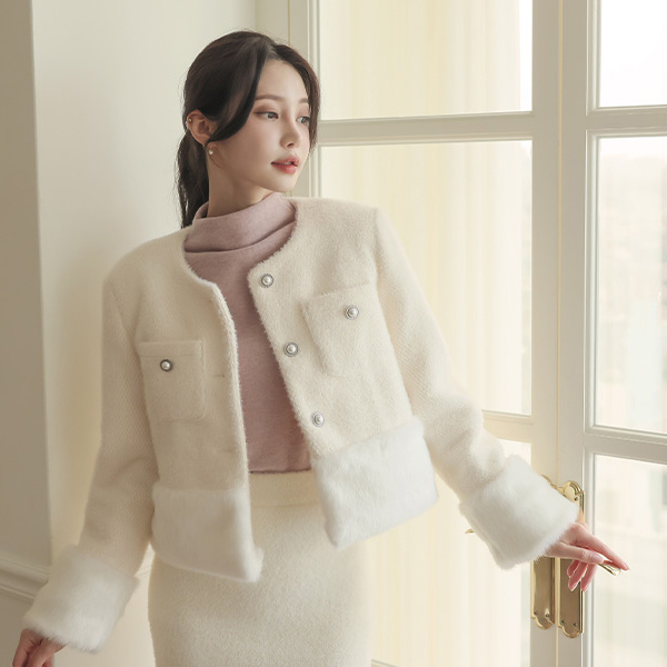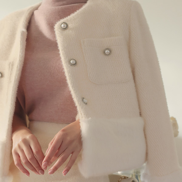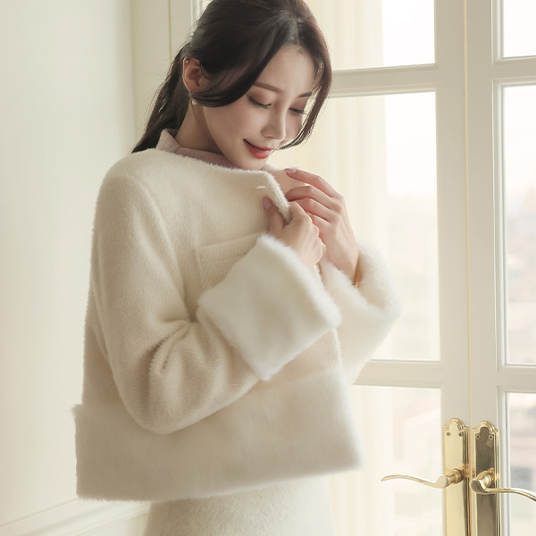 Eco 皮草大衣 毛皮草 花边 华夫格 夹克(2唡/绗缝里料)