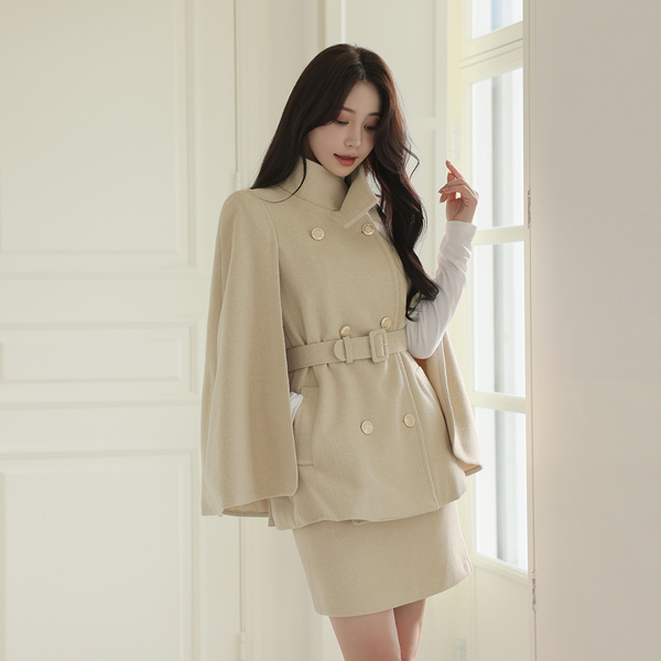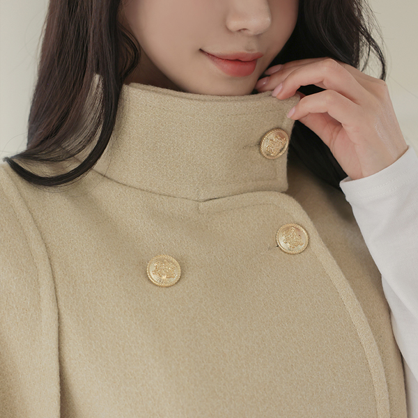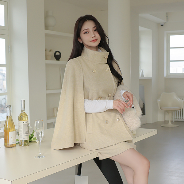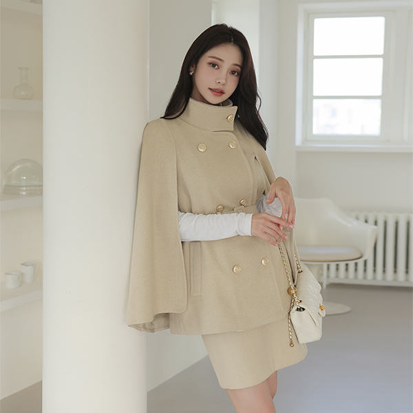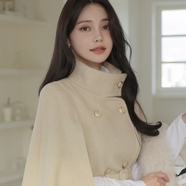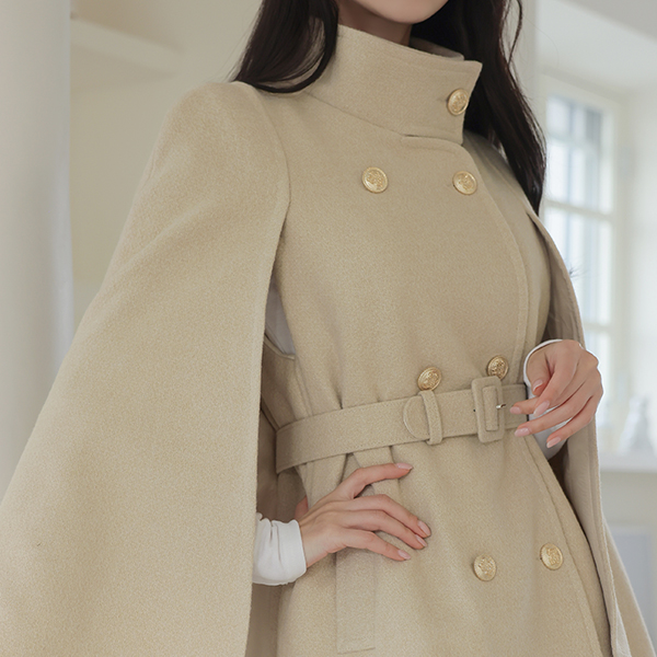 ODE 高龄 黄金 扣子 束带 披肩 羊毛 大衣