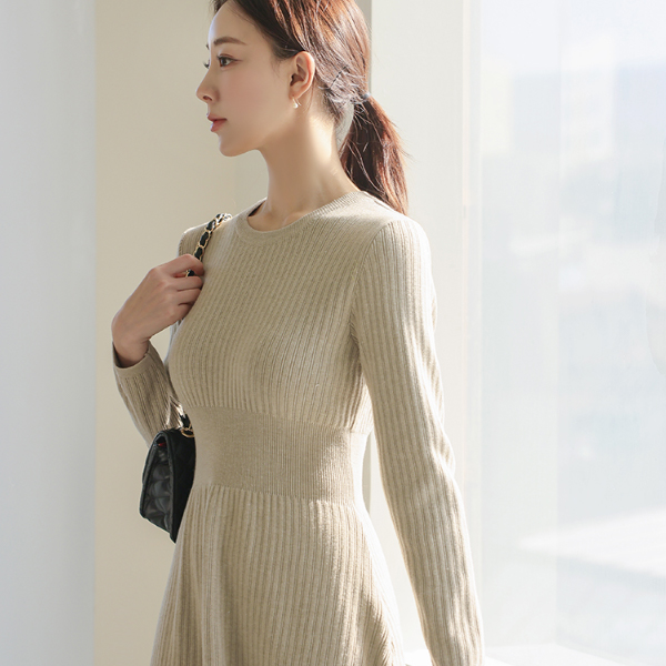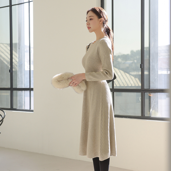 多色 条绒 喇叭 针织衫 连衣裙