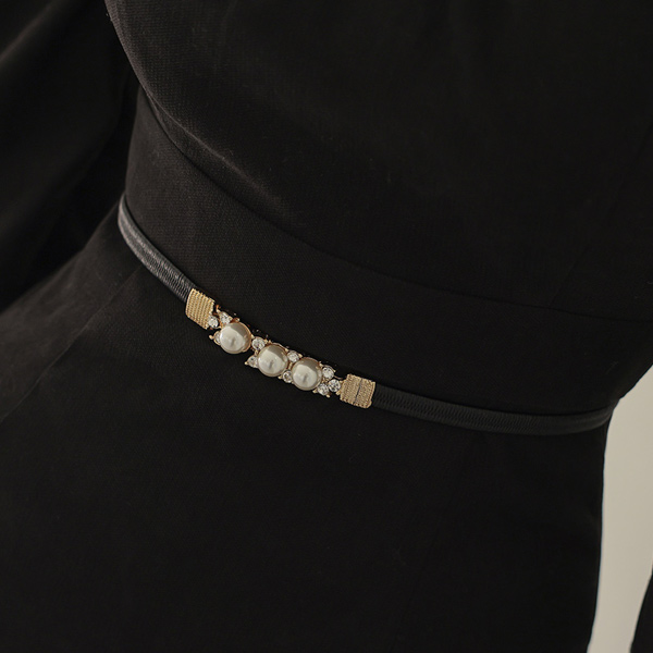 珍珠 镶钻 松紧带 腰带