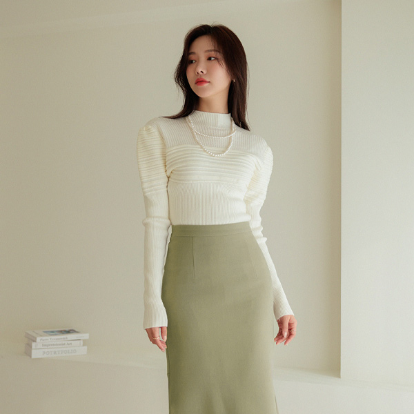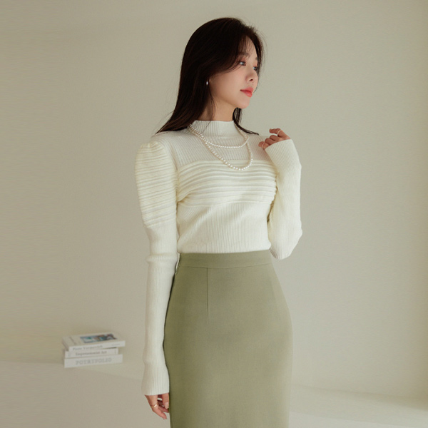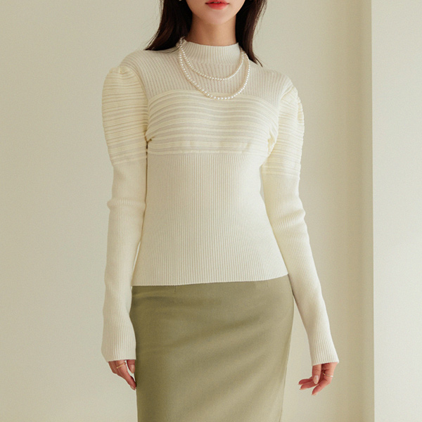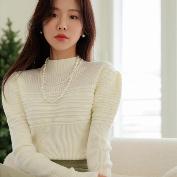 浪漫 泡泡袖 肩膀 混合 编织的 针织衫