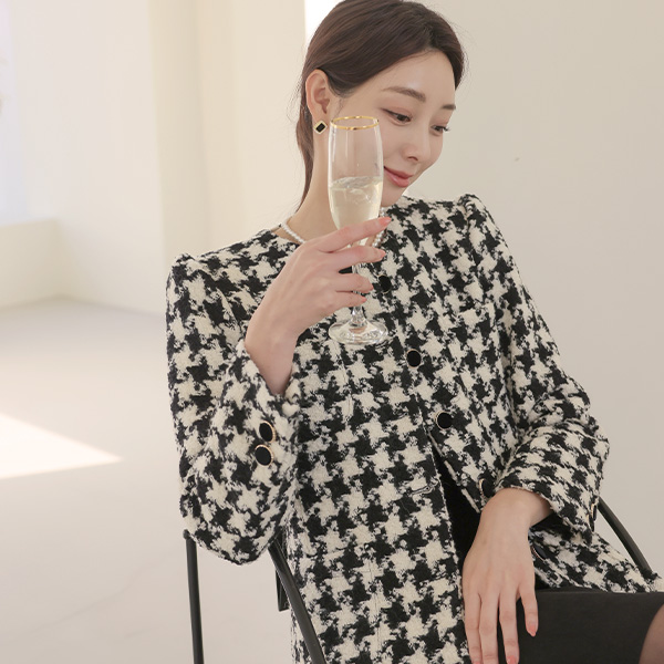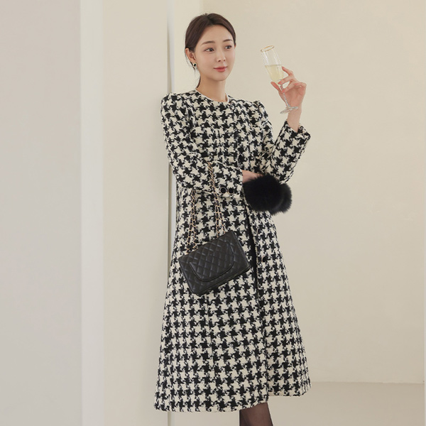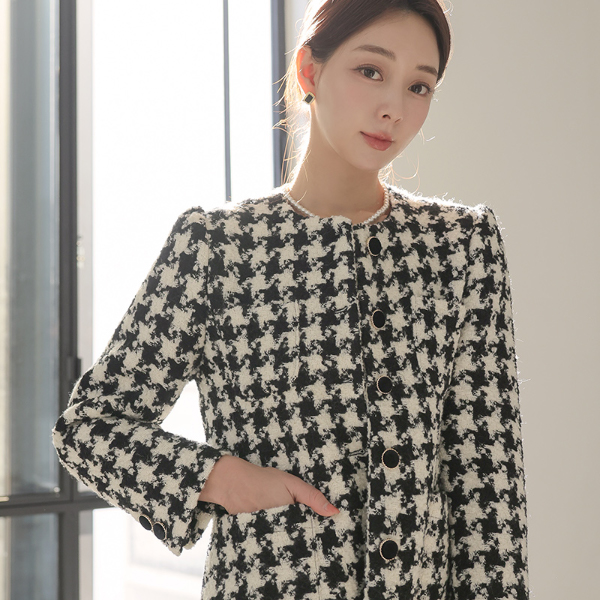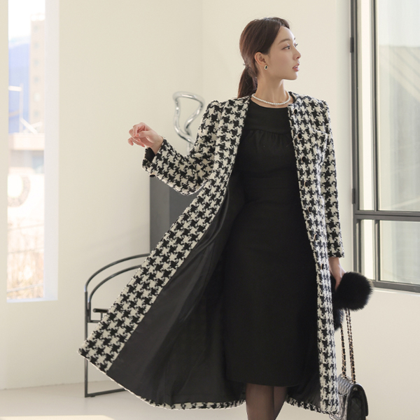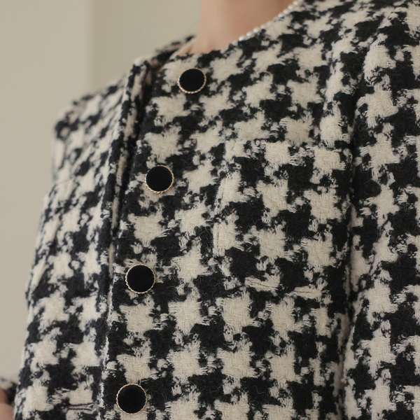 犬牙格子花纹 格子 无领 A字型 羊毛 大衣