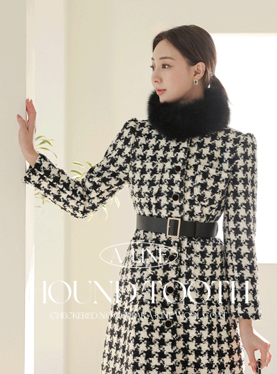 犬牙格子花纹 格子 无领 A字型 羊毛 大衣