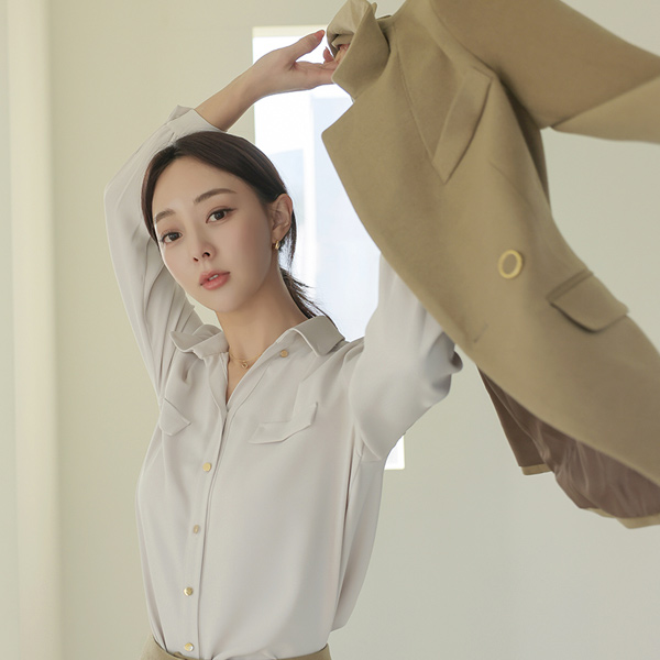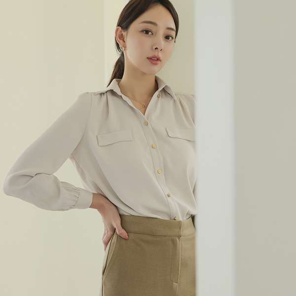 半开 领子 黄金 扣子 肩膀 褶皱 罩衫